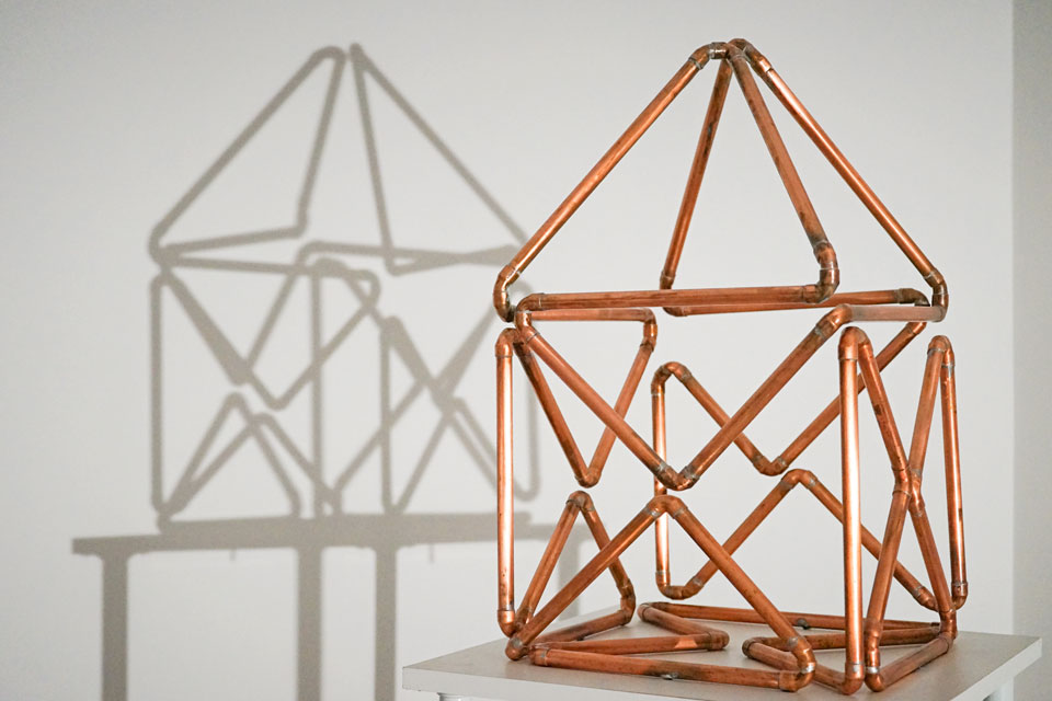 Seit einigen Jahren reitet mich der Gedanke, die Reduktionen in „Echtgröße“ herzustellen. Parallel dazu fing ich an, mich auch wieder zweidimensionalen Darstellungen zu widmen. Es entstanden Objekte aus Kupferrohr, die der Grundidee entsprechen. Einige von ihnen waren zwischenzeitlich in einer Bildungs- und Tagesstätte, im Kunstraum Brebach in Saarbrücken, in der Galerie 49 in Saarbrücken sowie bei einigen Outdoor-Events ausgestellt.
